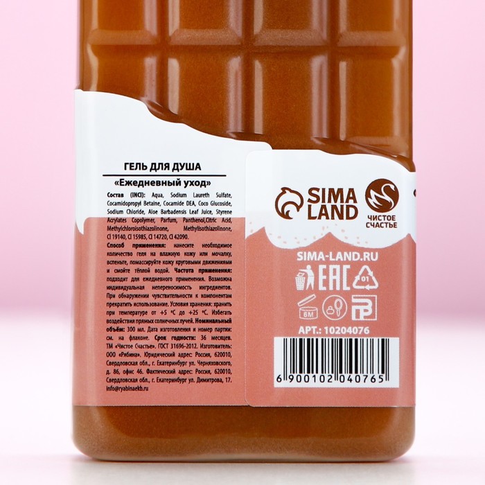 Гель для душа «Пусть жизнь будет сладкой», 300 мл, аромат молочного шоколада, Чистое счастье — Характеристики