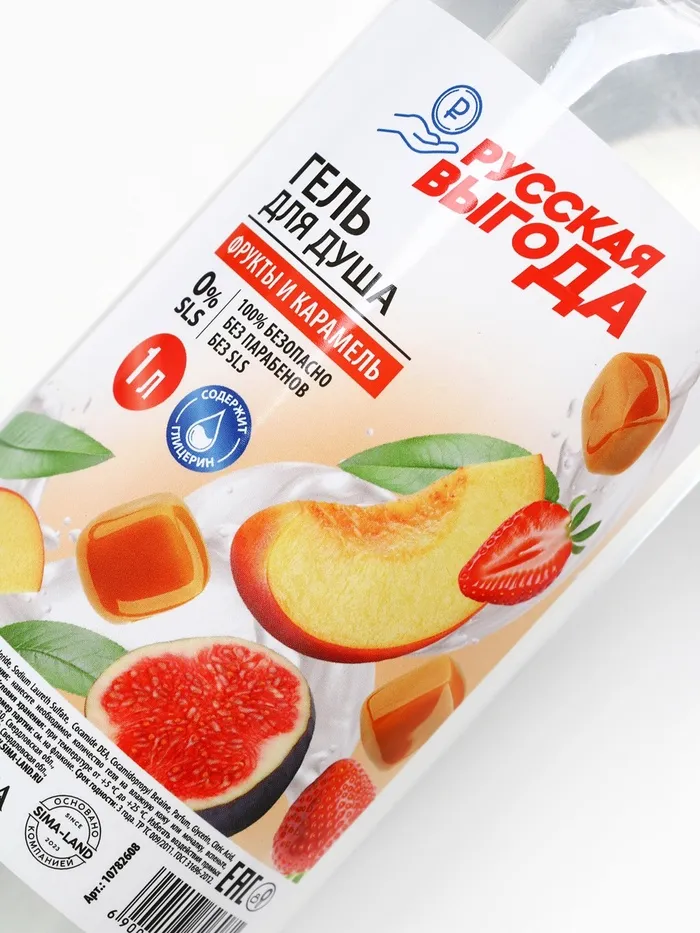 Гель для душа РУССКАЯ ВЫГОДА, аромат фрукты и карамель, 1000 мл — Характеристики