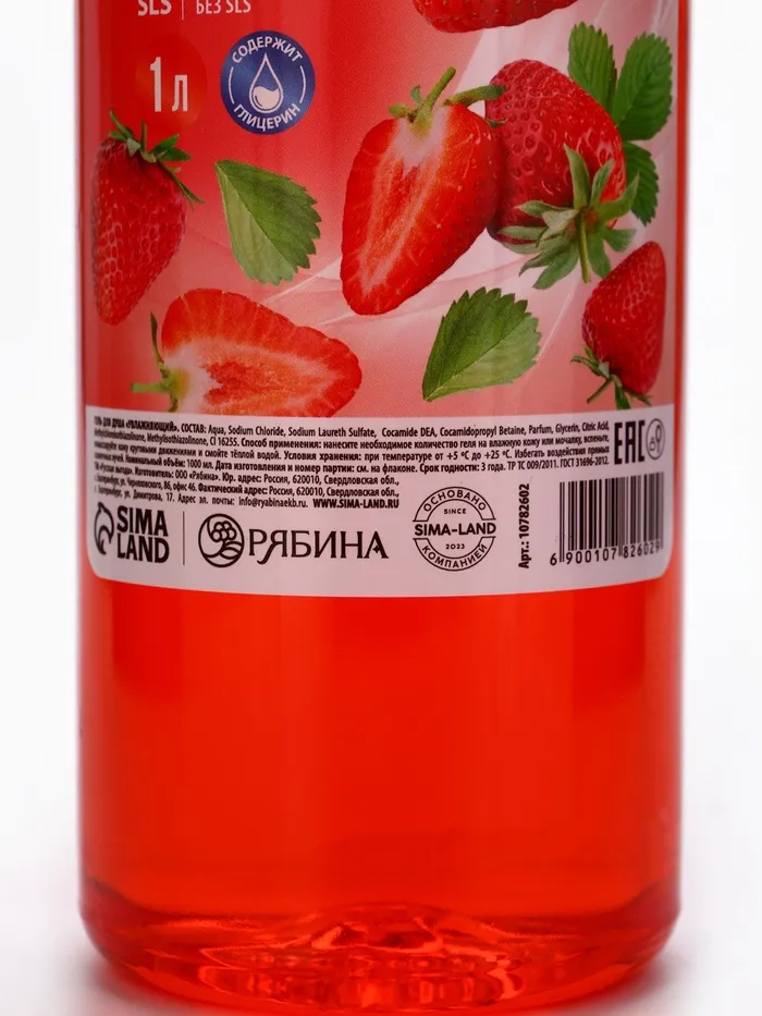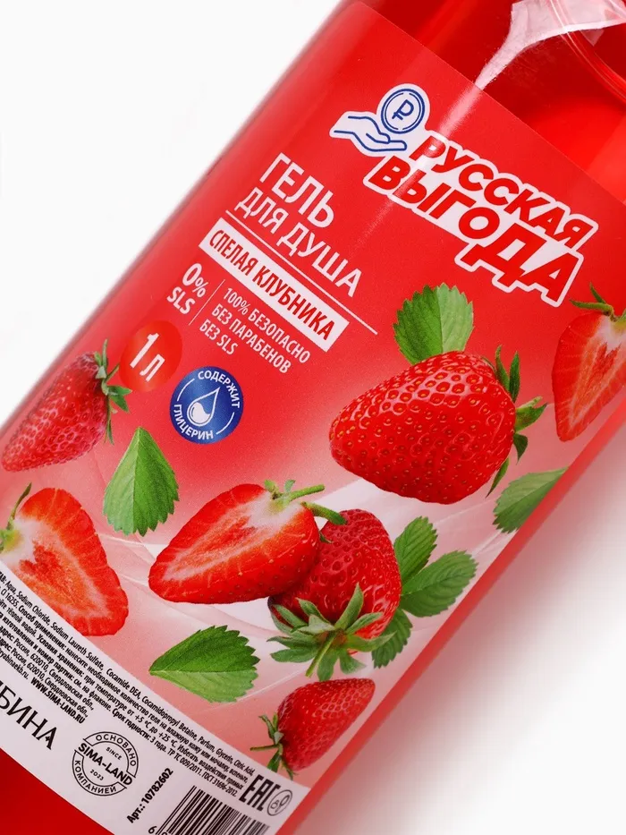 Гель для душа РУССКАЯ ВЫГОДА, аромат спелая клубника, 1000 мл — Характеристики