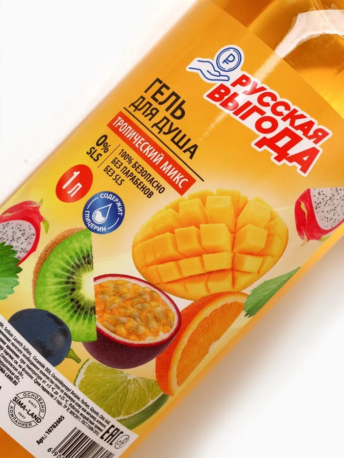 Гель для душа РУССКАЯ ВЫГОДА, аромат тропический микс, 1000 мл — Характеристики