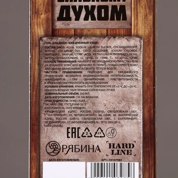 Гель для душа «С 23 Февраля!», 300 мл, аромат сандала и бергамота, HARD LINE — Характеристики