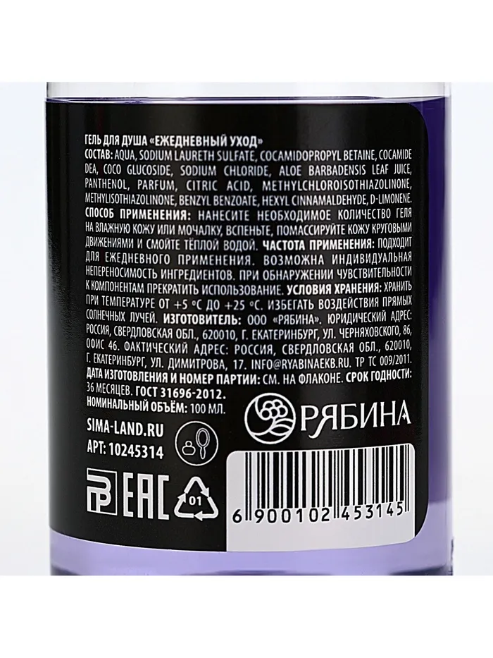 Гель для душа «С чистого листа», 100 мл, аромат ежевики, Beauty Fox — Характеристики