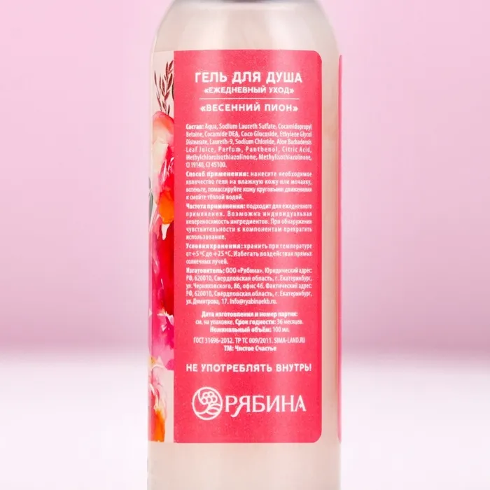 Гель для душа «Самой красивой», 100 мл, аромат весеннего пиона, Чистое счастье — Характеристики