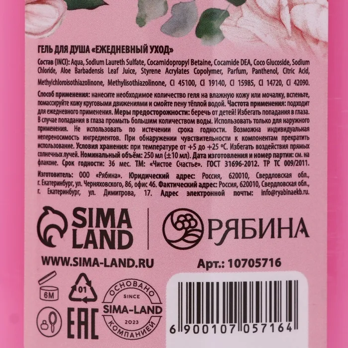 Гель для душа «Самой нежной», 250 мл, аромат воздушного шоколада, Чистое счастье — Характеристики