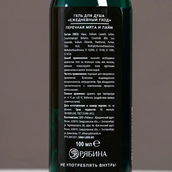 Гель для душа «Самому лучшему», 100 мл, аромат перечной мяты и лайма, HARD LINE — Характеристики