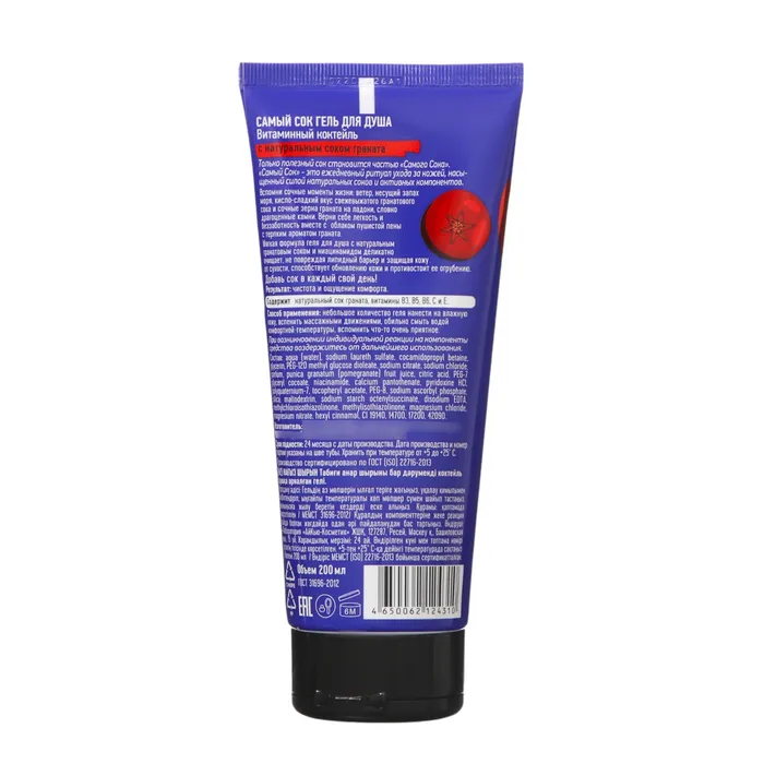 Состав: Aqua (water), sodium laureth sulfate, cocamidopropyl betaine, glycerin, PEG-120 methyl glucose dioleate, sodium citrate, sodium chloride, parfum, punica granatum (pomegranate) fruit juice, citric acid, PEG-7 glyceryl cocoate, niacinamide, calcium pantothenate, pyridoxine HCl, polyquaternium-7, tocopheryl acetate, PEG-8, sodium ascorbyl phosphate, silica, maltodextrin, sodium starch octenylsuccinate, disodium EDTA, methylchloroisothiazolinone, methylisothiazolinone, magnesium chloride, magnesium nitrate, hexyl cinnamal, CI 19140, 14700, 17200, 42090.
