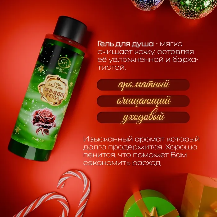 Гель для душа «Secret Beauty» с ароматом зимней розы, 250 мл - идеально подходит для новогоднего сезона. Его утонченный и праздничный аромат зимней розы окутает вас чувственным шлейфом, создавая атмосферу уюта и сказки.