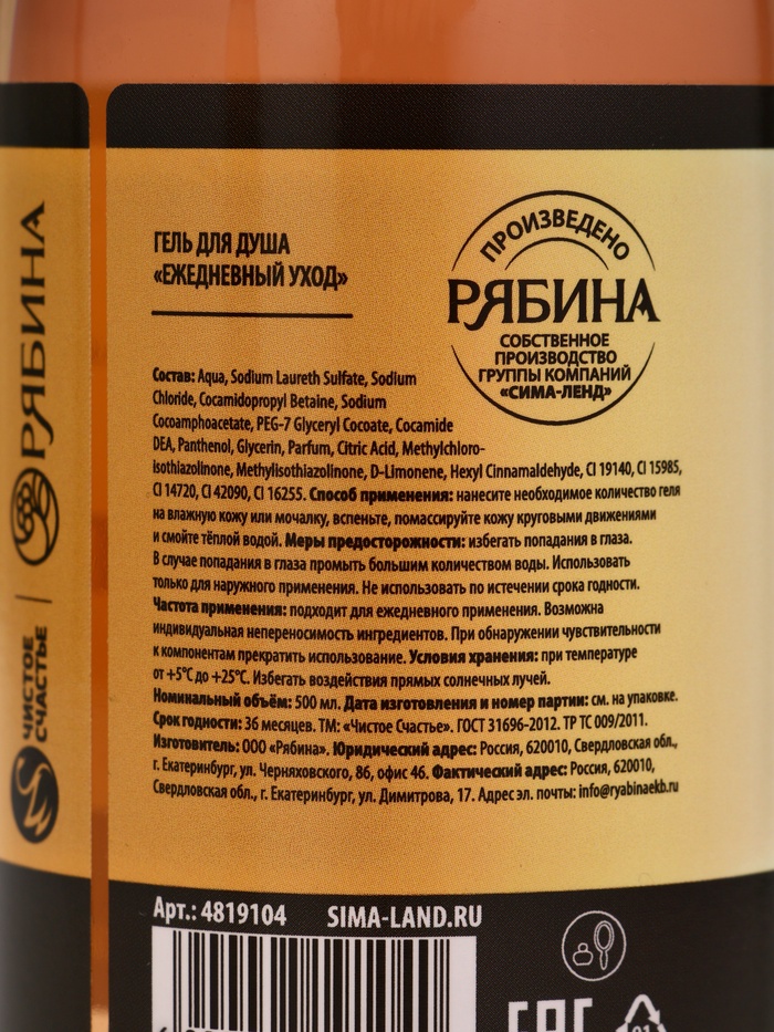 Гель для душа шампанское «Море», 500 мл, аромат свежих цветов, Чистое счастье — Характеристики