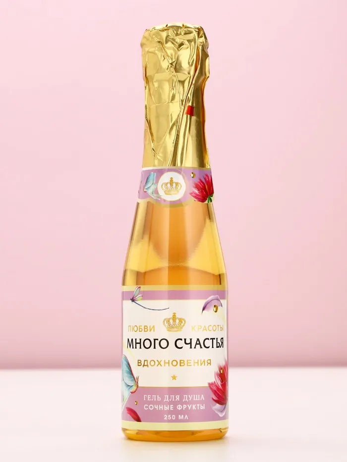 Гель для душа шампанское «Счастья и красоты!», 250 мл, аромат сочных фруктов, Чистое счастье — Характеристики