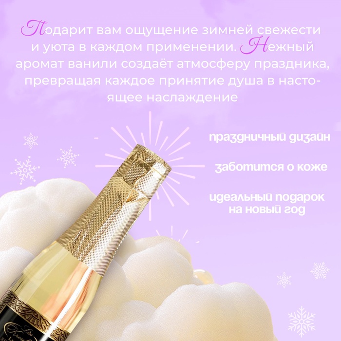 Подарите себе или близким ощущение тепла и уюта среди зимних холодов! Удобный объём в 260 мл позволяет брать средство с собой в поездки или использовать дома, наполняя ванную комнату восхитительным ароматом.