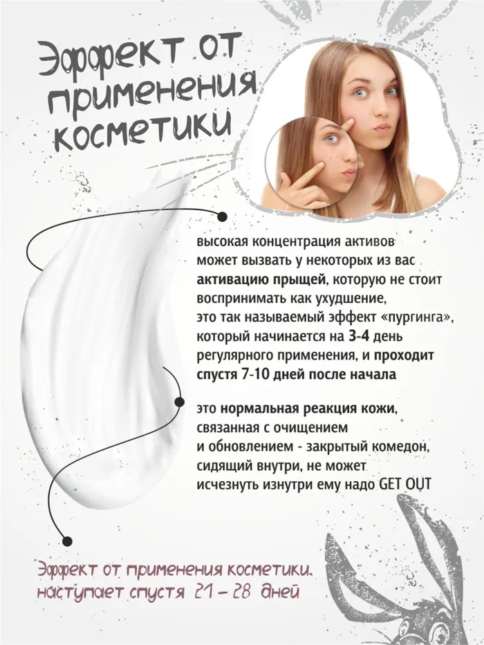 Эффективно очищающая деликатная формула и мощная команда активов: Салициловая кислота и особые производные Азелаиновой кислоты, Серы и Цинка — не оставят шансов загрязнениям и излишкам себума (кожного сала) портить твою кожу на теле. Они способны отразить натиск несовершенств и убрать их следы. Ментол освежит и уменьшит дискомфорт от нежелательных проявлений, а союз экстрактов клевера, кипрея и таволги уменьшит «пожар» на коже и поможет избавиться от закрытых и открытых локальных несовершенств.