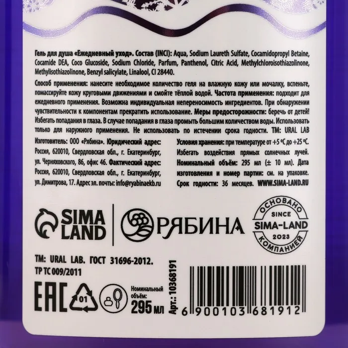 Гель для душа «Сон», 295 мл, аромат смородины, URAL LAB — Характеристики
