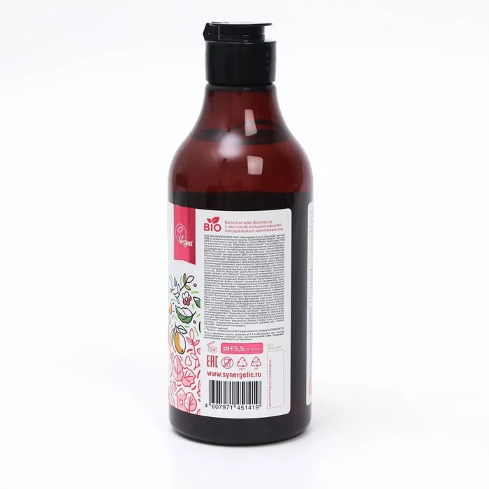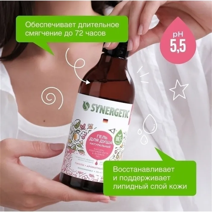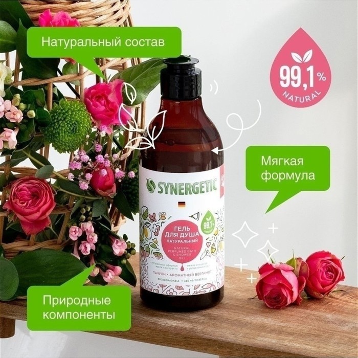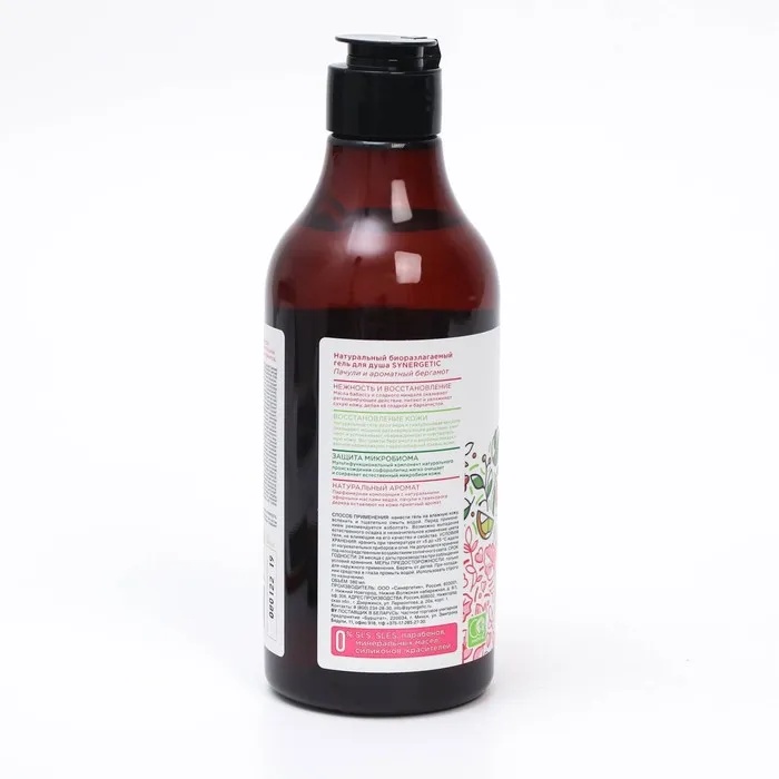 Гель для душа SYNERGETIC, биоразлагаемый, со вкусом пачули и ароматного бергамота, 380 мл — Характеристики