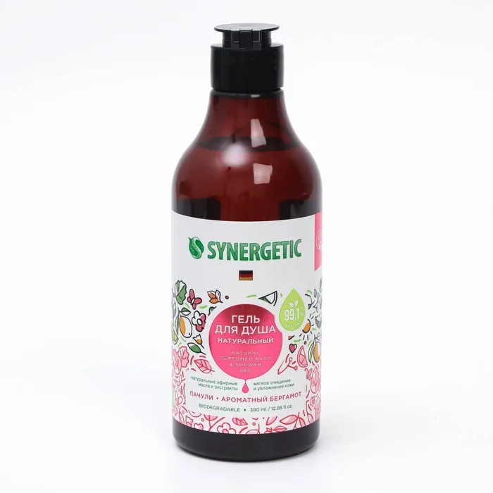 Гель для душа SYNERGETIC, биоразлагаемый, со вкусом пачули и ароматного бергамота, 380 мл