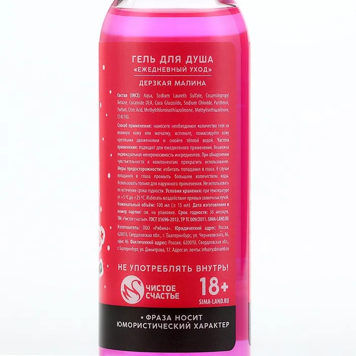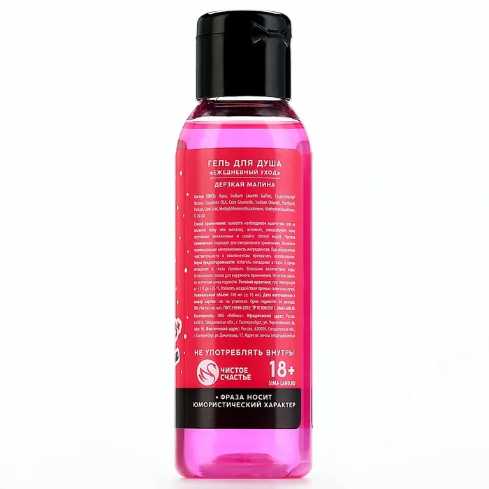 Гель для душа «Той, кто плохо себя вела», 100 мл, аромат малины, 18+, Чистое счастье — Характеристики