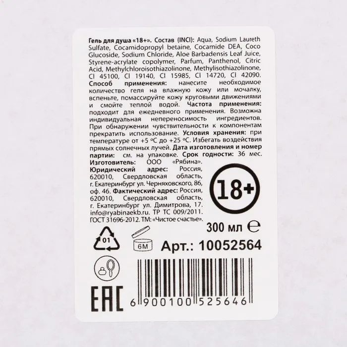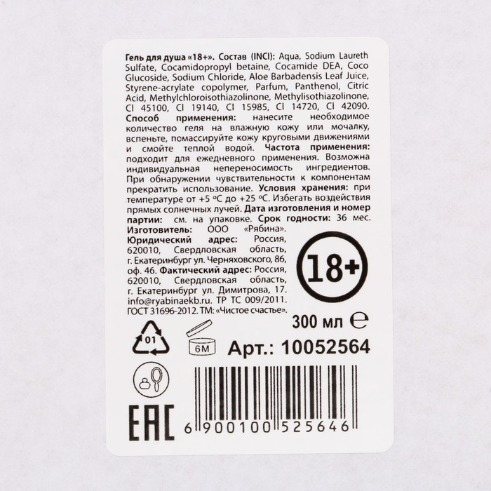 Гель для душа «Твой лучший подарок», 300 мл, аромат малинового шоколада, Чистое счастье — Характеристики