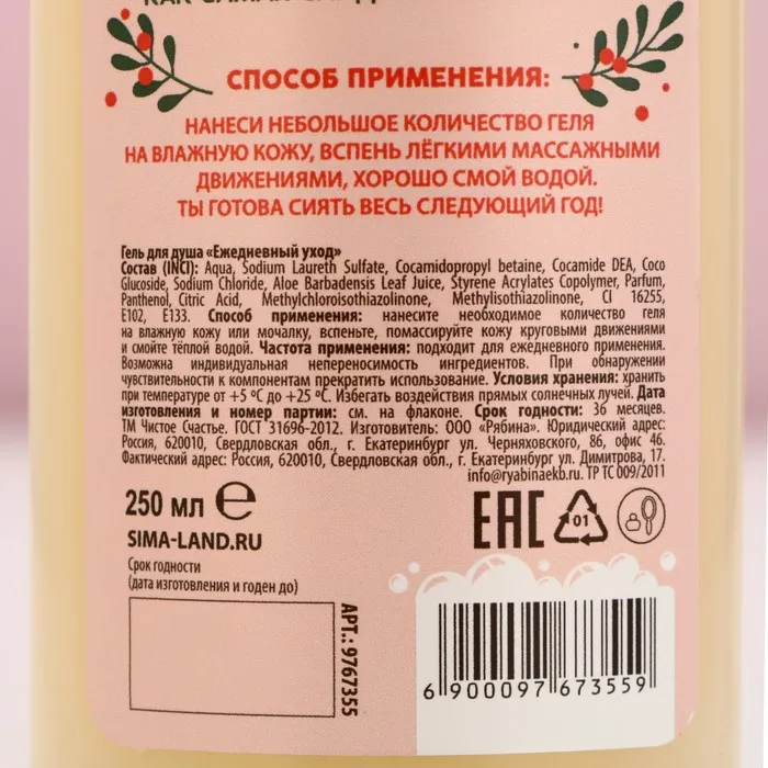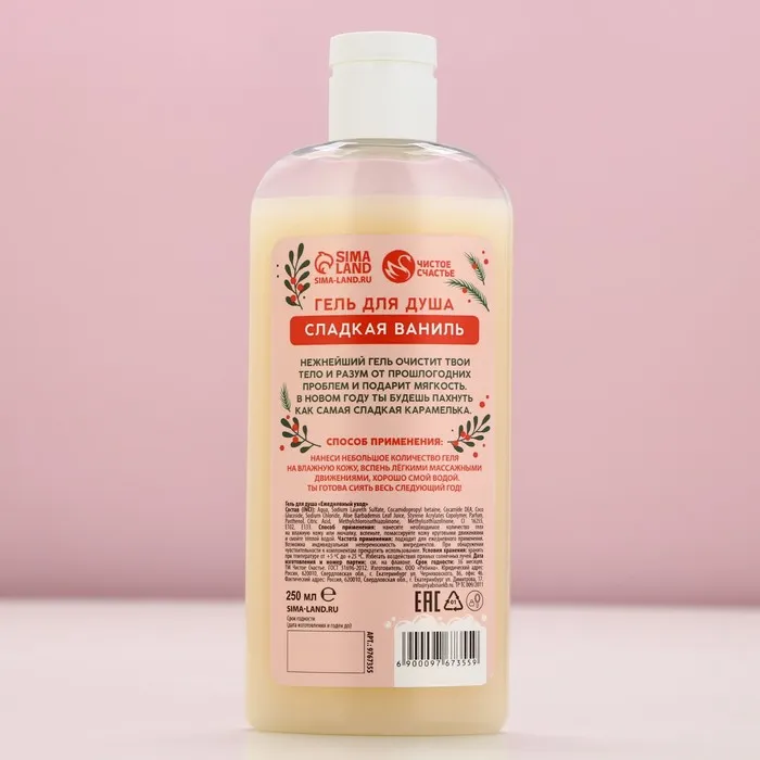 Гель для душа «Ты не подарок, но и я не Санта», 250 мл, аромат сладкой ванили, Чистое счастье — Характеристики
