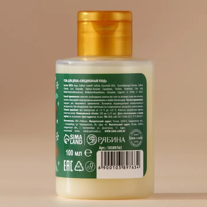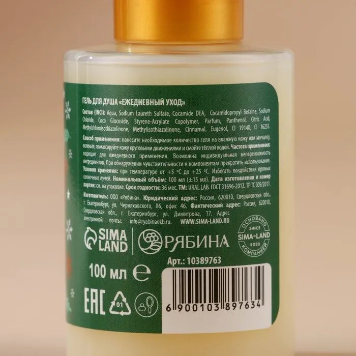 Гель для душа URAL LAB, 100 мл, аромат булочки с корицей — Характеристики