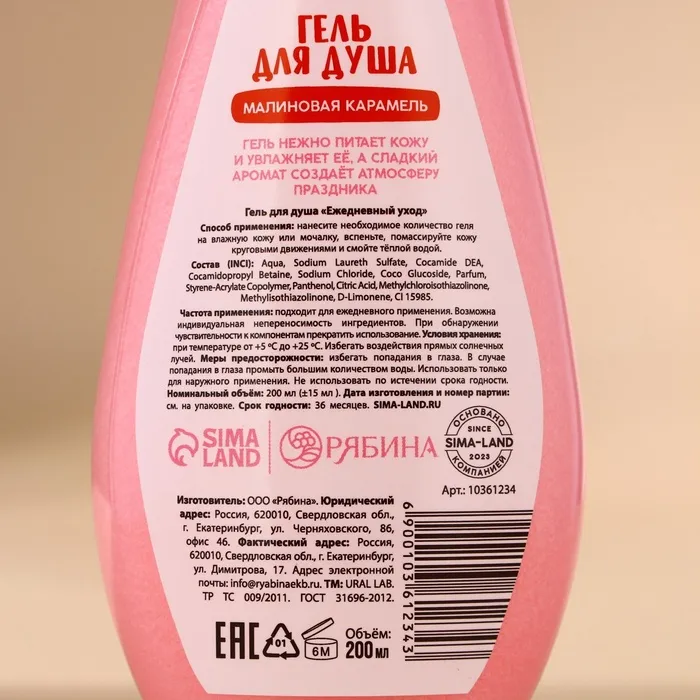 Гель для душа URAL LAB, 200 мл, аромат малиновой карамели — Характеристики