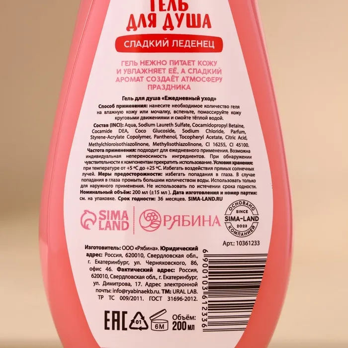 Гель для душа URAL LAB, 200 мл, аромат сладкого леденца — Характеристики