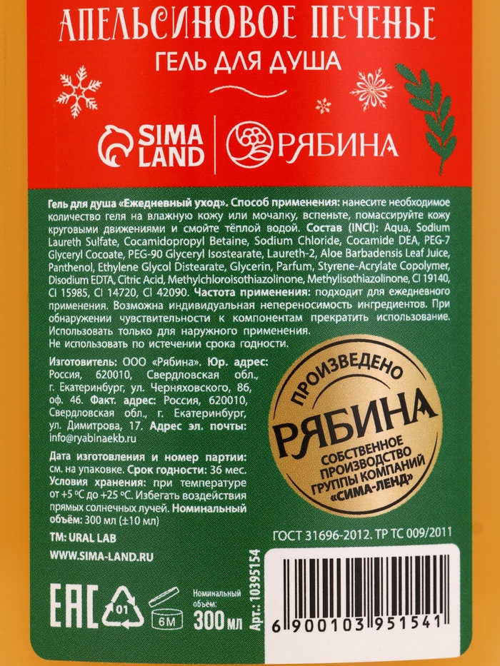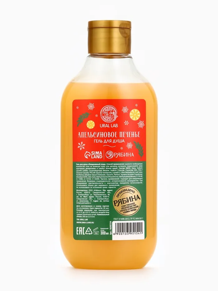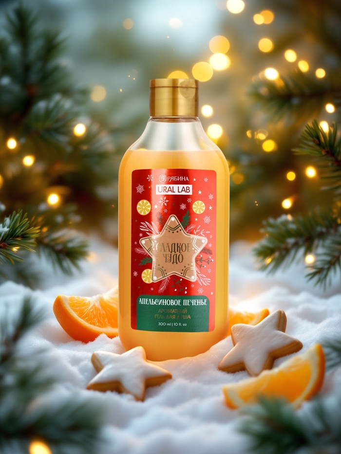 Гель для душа URAL LAB, 300 мл, аромат апельсинового пирога, Новый Год — Характеристики