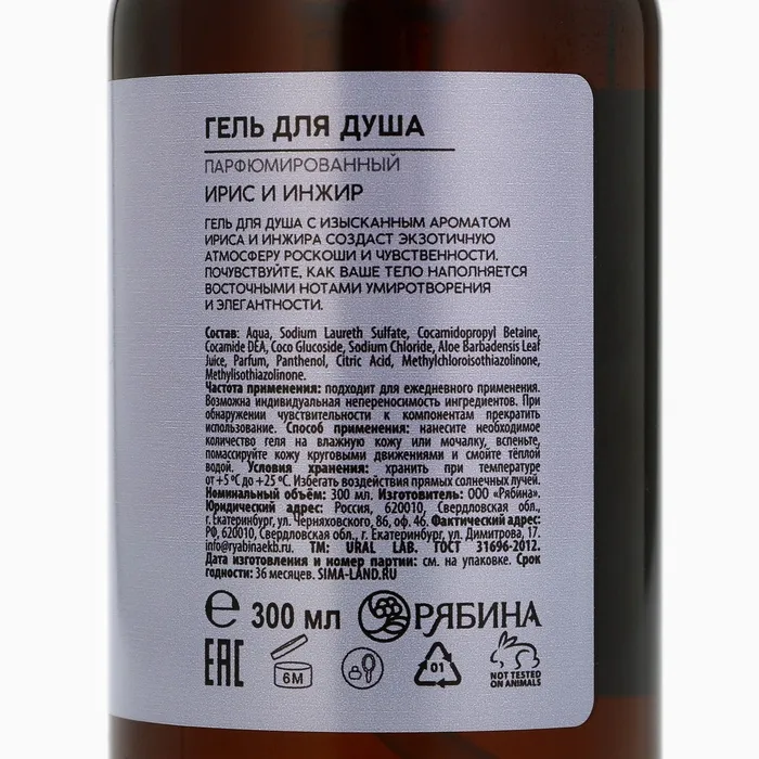 Гель для душа URAL LAB, 300 мл, аромат ириса и инжира — Характеристики