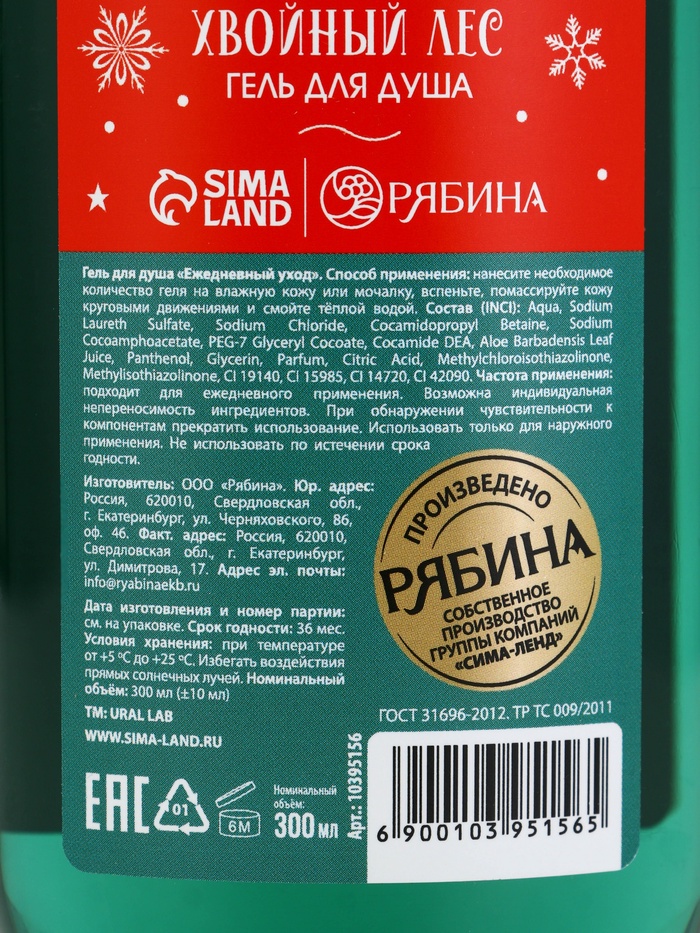 Гель для душа URAL LAB, 300 мл, аромат хвойный лес, Новый Год — Характеристики
