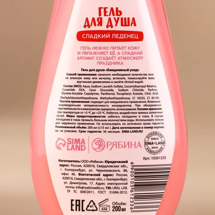 Гель для душа в коробке, 200 мл, аромат сладкого леденца, URAL LAB — Характеристики