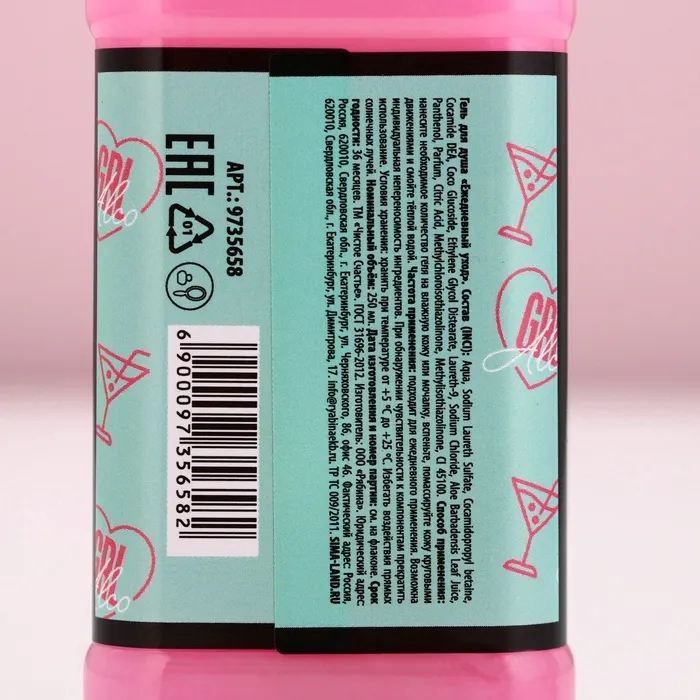 Гель для душа виски «Закатываю глаза», 250 мл, аромат ягодного коктейля, Чистое счастье — Характеристики