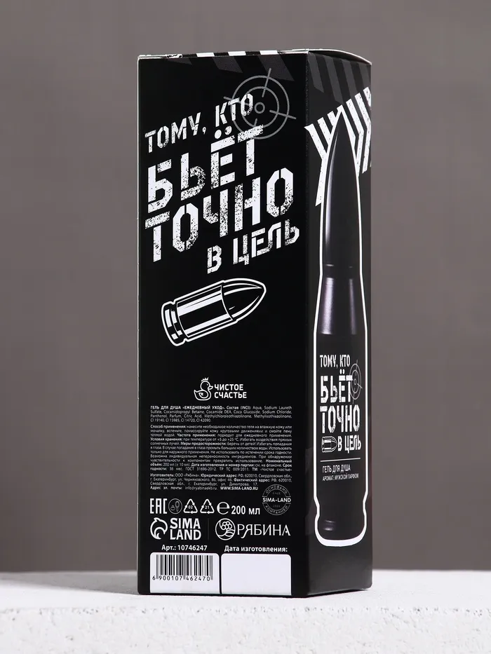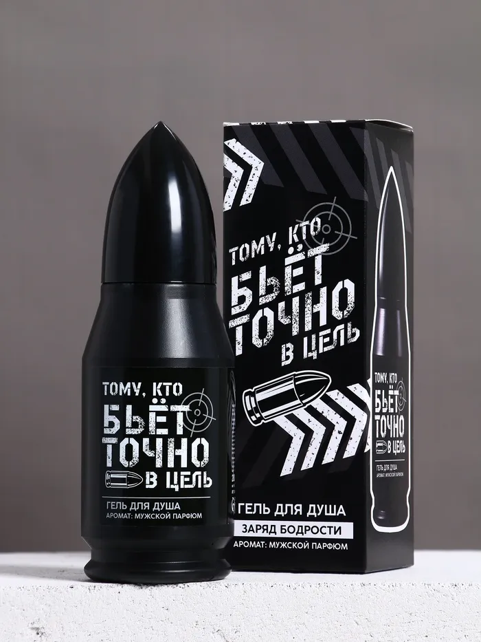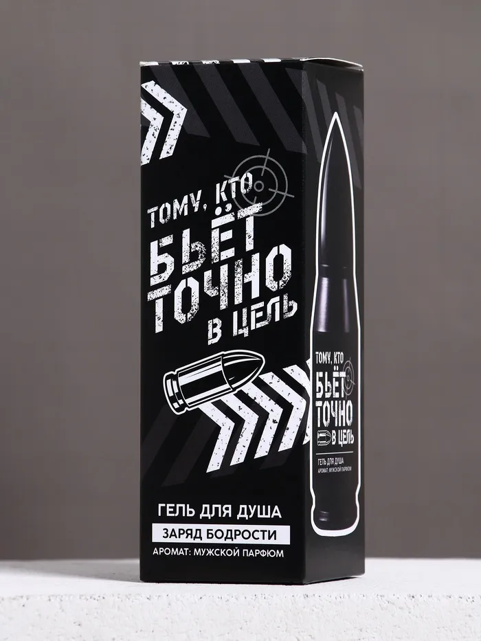 Гель для душа во флаконе пуля в коробке «Тому, кто бьёт в цель», 200 мл, аромат мужской парфюм — Характеристики