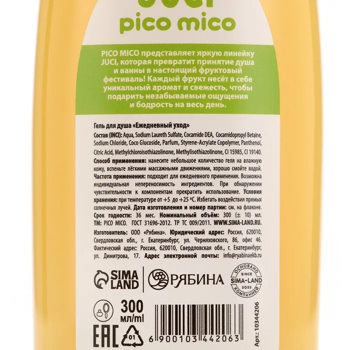 Гель для душа женский, 300 мл, аромат банана, PICO MICO — Характеристики