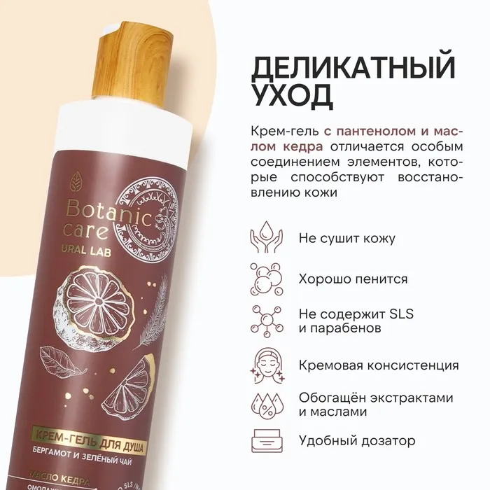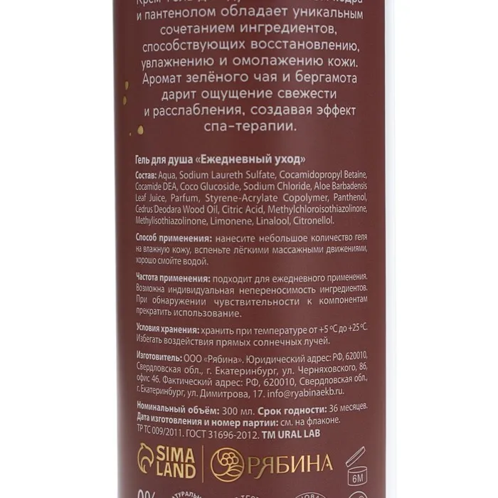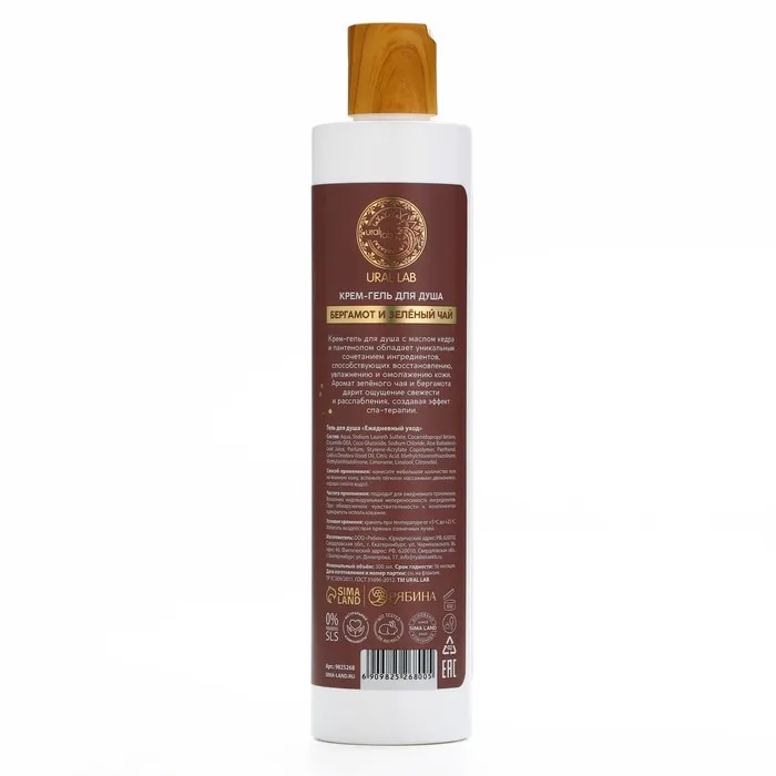 Гель для душа женский, 300 мл, аромат бергамота и зеленого чая, URAL LAB — Характеристики