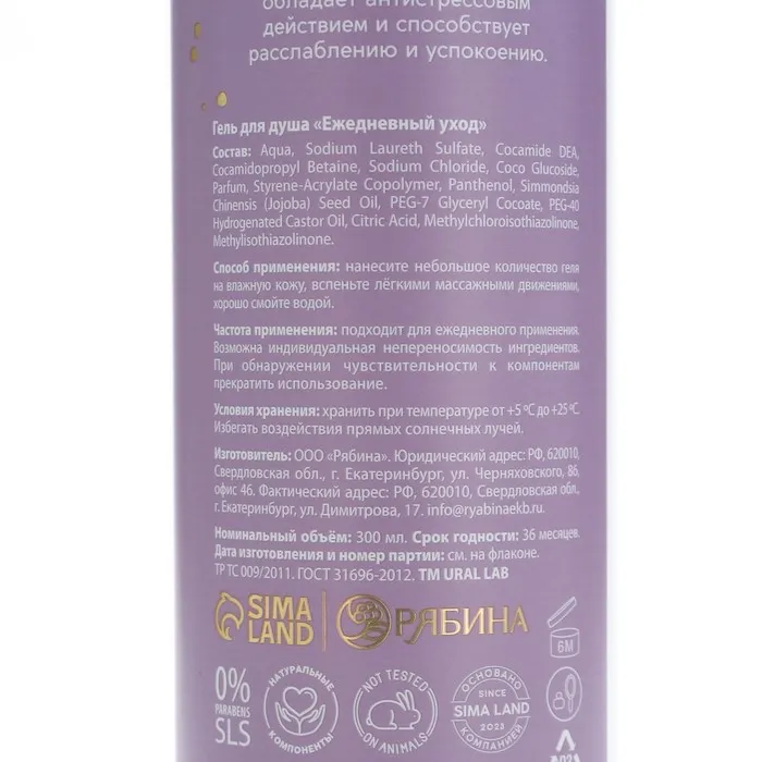 Гель для душа женский, 300 мл, аромат лаванды и макадамии, URAL LAB — Характеристики