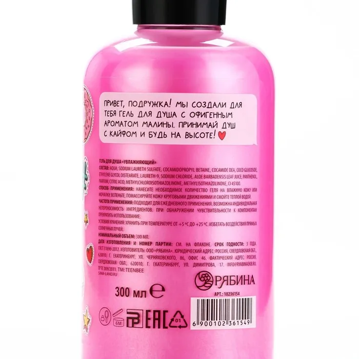 Гель для душа женский, 300 мл, аромат малины, TeenBee — Характеристики