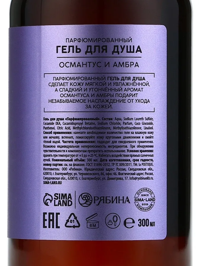 Гель для душа женский, 300 мл, аромат османтуса и амбры, LA POETIQUE — Характеристики