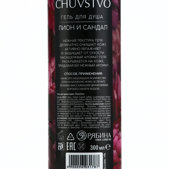 Гель для душа женский, 300 мл, аромат пиона и сандала, URAL LAB — Характеристики