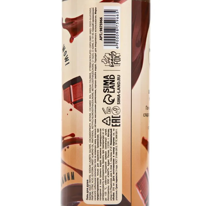 Гель для душа женский, 350 мл, аромат шоколадного пудинга, CANDY FOOD — Характеристики