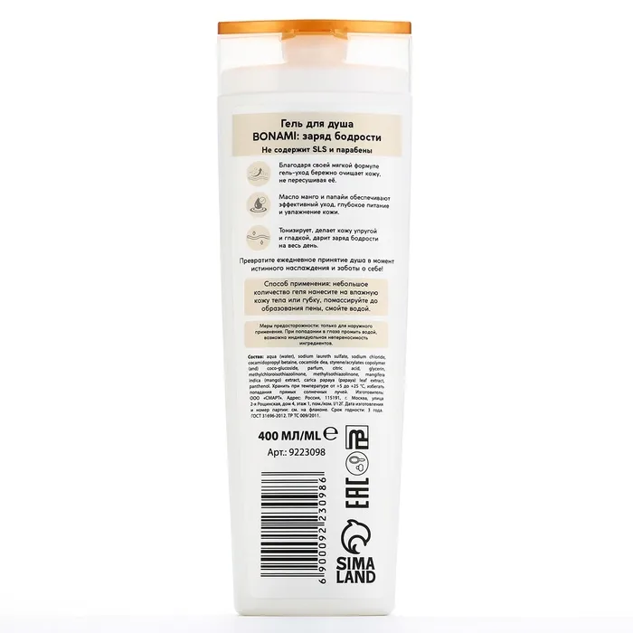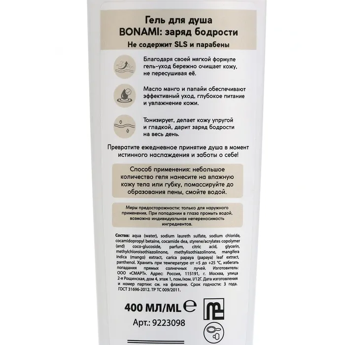 Гель для душа женский, 400 мл, аромат экзотических фруктов, BONAMI — Характеристики