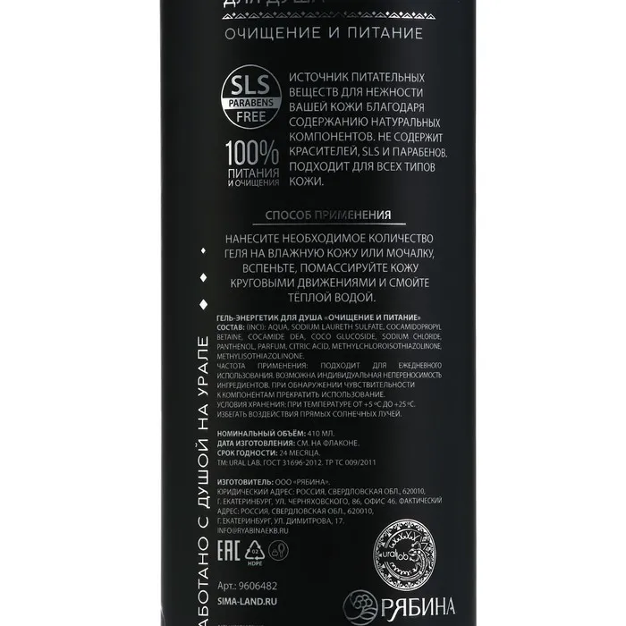 Гель для душа женский, 410 мл, аромат цветов уральских лугов, URAL LAB — Характеристики
