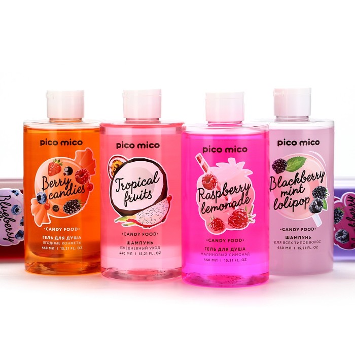 Гель для душа женский, 440 мл, аромат ежевичного джема, PICO MICO — Характеристики