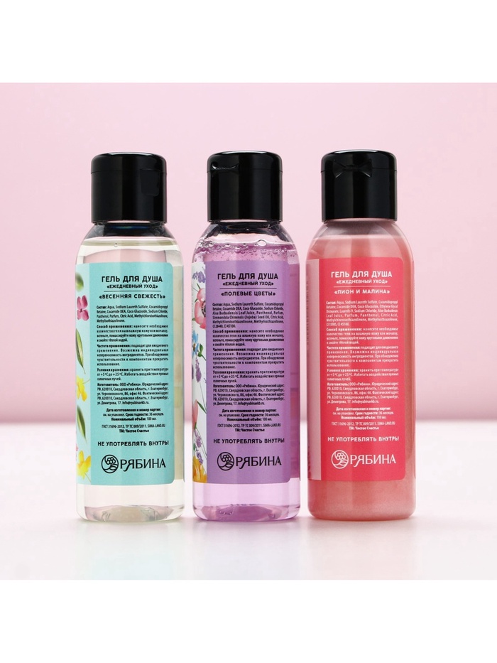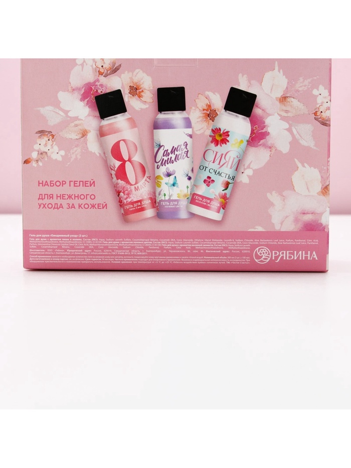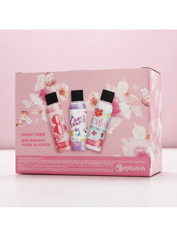 Гель для душа женский «8 марта!», набор 3×100 мл, Чистое счастье — Характеристики