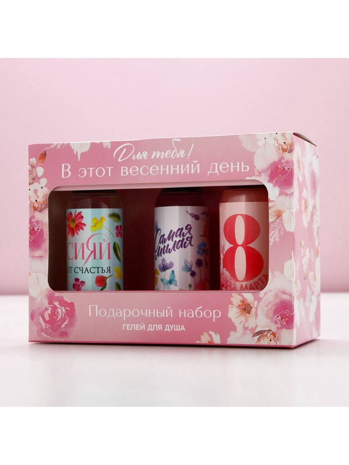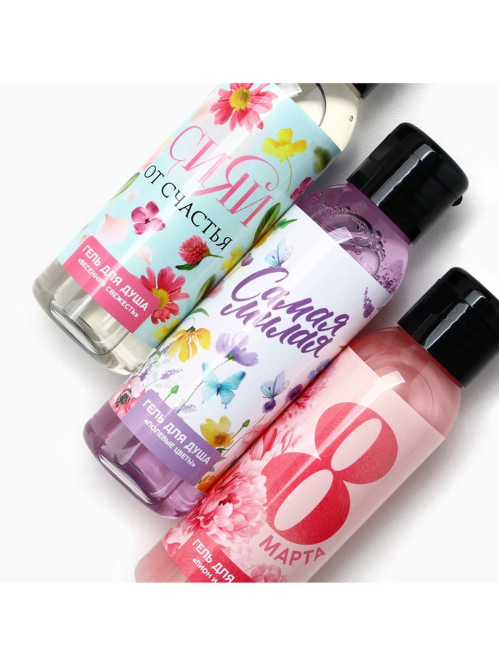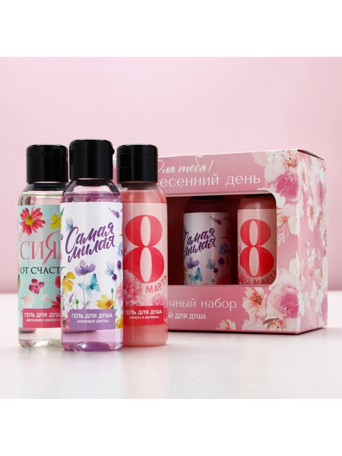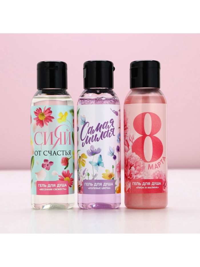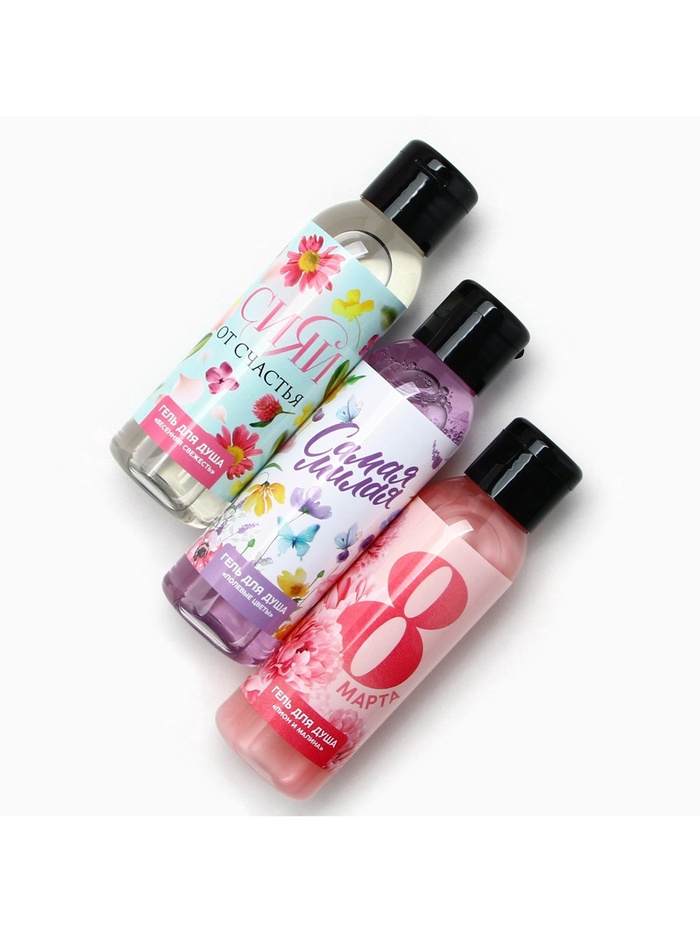 Гель для душа женский «8 марта!», набор 3×100 мл, Чистое счастье