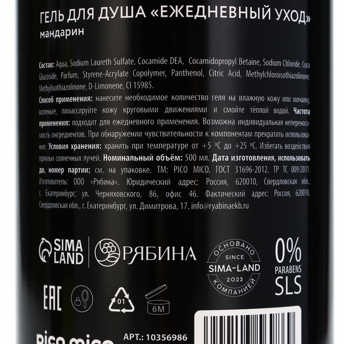 Гель для душа женский «Дерзкий цитрус», 500 мл, аромат мандарина, PICO MICO — Характеристики