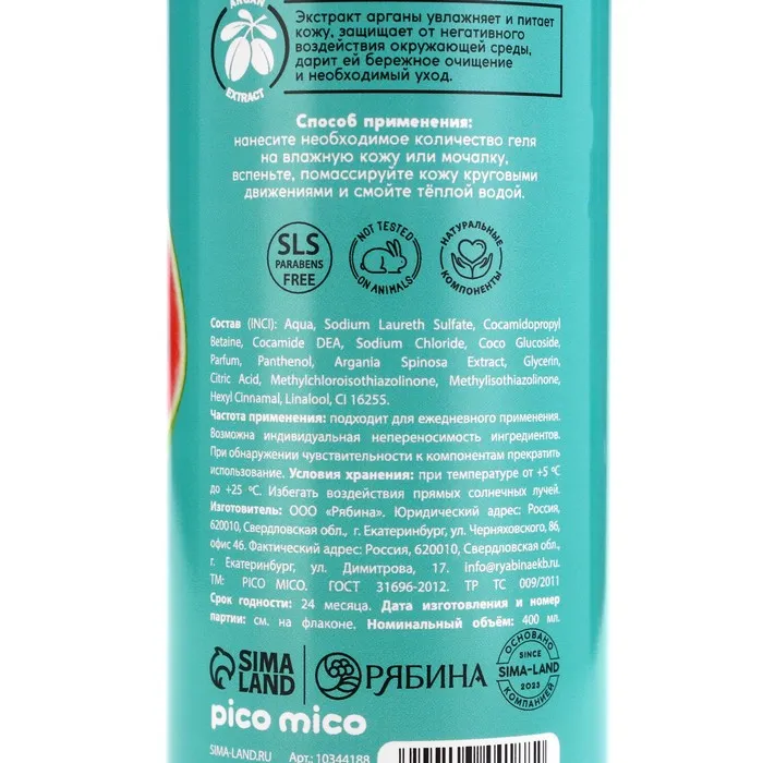 Гель для душа женский Ice watermelon, 400 мл, аромат арбуза, PICO MICO — Характеристики