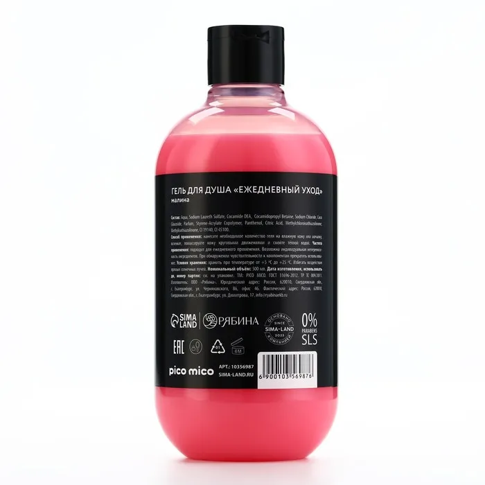 Гель для душа женский «Лакомый кусочек», 500 мл, аромат малины, PICO MICO — Характеристики