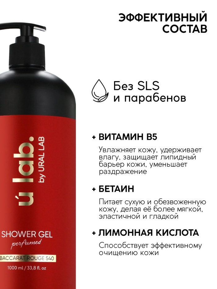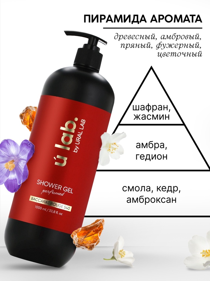 Гель для душа женский, парфюмированный Baccarat Rouge, 1000 мл, ULAB — Характеристики