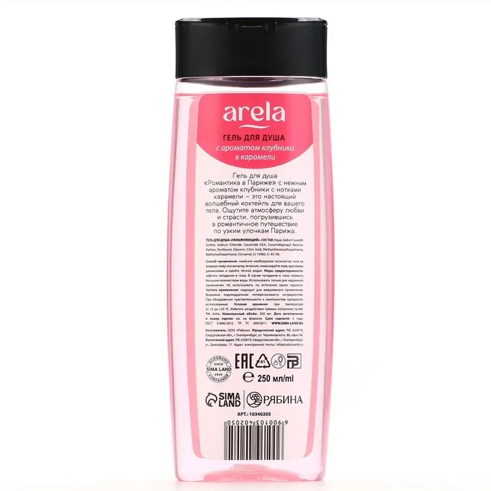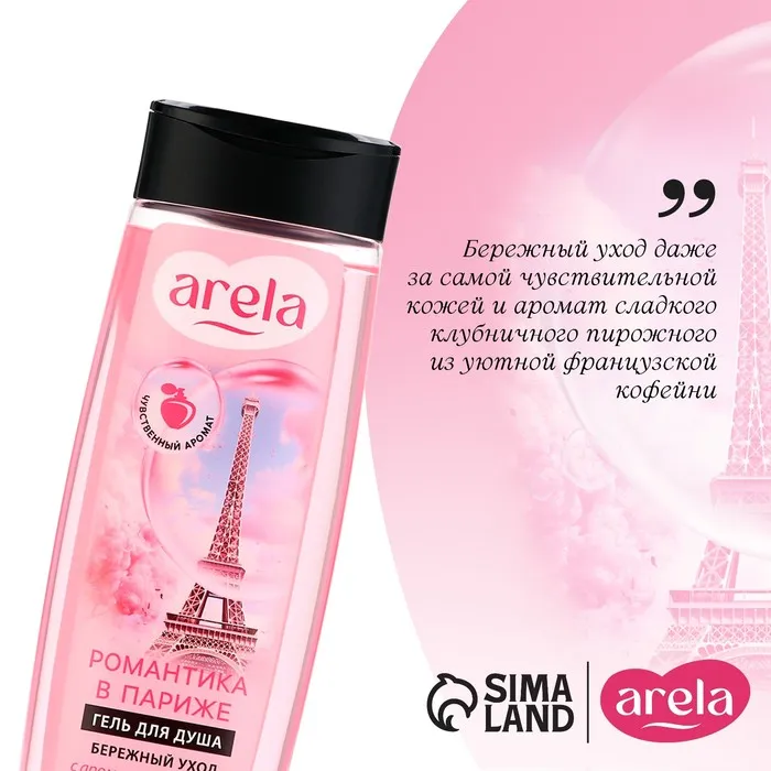 Гель для душа женский «Романтика в Париже», 250 мл, аромат клубники в карамели, ARELA — Характеристики