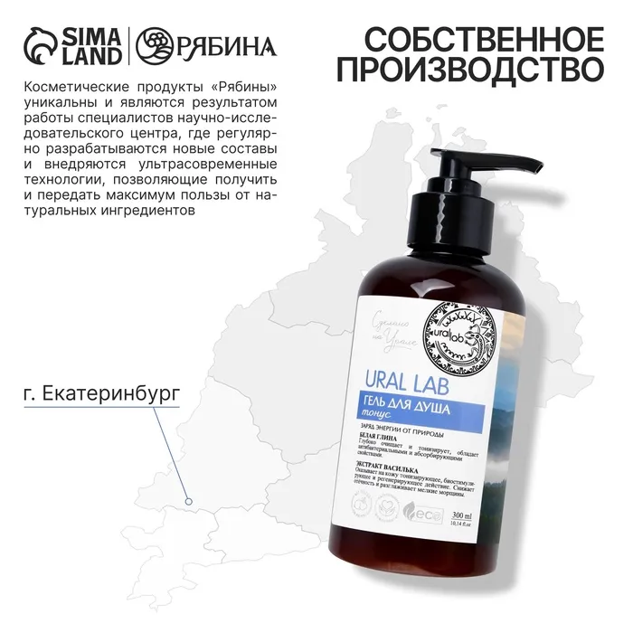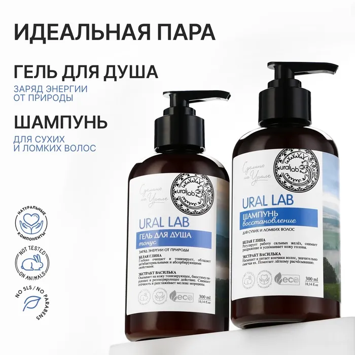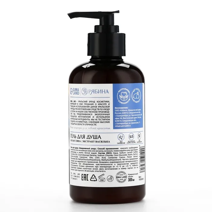 Гель для душа женский с белой глиной и экстрактом василька, 300 мл, URAL LAB — Характеристики