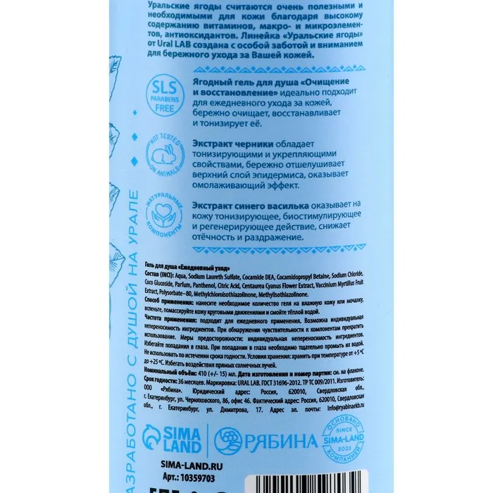 Гель для душа женский с экстрактом черники и василька, 410 мл, URAL LAB — Характеристики