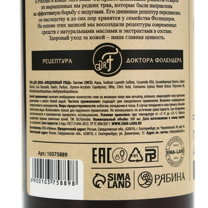 Гель для душа женский с экстрактом васильска, 300 мл, DR.FOLENDER — Характеристики